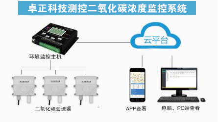 室內(nèi)二氧化碳變送器起到實(shí)時(shí)監(jiān)測(cè)的目的,它將數(shù)據(jù)傳送環(huán)境監(jiān)控主機(jī),通過(guò)小主機(jī)將數(shù)據(jù)上傳至云平臺(tái),用戶通過(guò)登錄卓正科技云平臺(tái)查看辦公室內(nèi)的二氧化碳濃度變化。